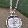This stamped charm was created in pure silver (99.9%) using an antique French wax stamp, with the word "INEBRANLABLE." In English, this translates to mean "firm, persistent, resolute, steady, solid." The image accompanying the word is a stately, regal, rooted tree.