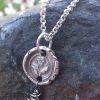 This stamped charm was created in pure silver (99.9%) using an antique wax stamp. The image is of a lovely bloom, perhaps a Posey. Dangling from the insignia is a gorgeous, Grade AAA Chrome Diopside briolette measuring approximately 5 x 7mm. So lustrous is the green of this gemstone, it was believed that the gem had fallen directly from the Tree of Life. What a beautiful representation of Spring, rebirth and new life. And, according to legend, this gemstone brings on sweet dreams when placed on the forehead while resting. What a lovely meaning behind a gift for Mom.