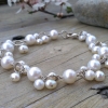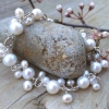 There is something I adore about pearls (maybe it's the SCUBA diver in me?), but I can't tell you how much the weight, feel and glow of pearls appeals to me. Lovely, luminous freshwater pearls - each approximately 8mm - in creamy white have been linked by hand with sterling silver wire to a round sterling hoop. Each hoop is embellished with freshwater pearl charms in a complementary creamy-white hue. This is one of my more popular bracelets, and although it originated as a bridal piece, it is classic enough to complement a business suit or flirty sundress!