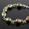 Lovely, luminous freshwater pearls - each 8mm or more - in an earthy shade of the olive green have been linked by hand with sterling silver wire to a round sterling hoop. Each hoop is embellished with Swarovski Crystal charms in various complementary shades of green, creating a subtle, feminine bracelet that sparkles with every movement!