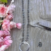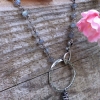 Gorgeous faceted labradorite rondelles have linked with oxidized sterling silver wire to create a sparkling gemstone chain. The gemstone chain has been secured to a handforged sterling circle (approximately one inch across) which as been hammered and oxidized, then tumbled for a high shine. A handforged S-Hook provides a secure clasp. A gorgeous, Grade A Labradorite "Onion" Briolette has been secured to the handforged circle with my signature wonky wrap. A trio of faceted rondelles dangles jointly with the briolette, adding movement & sparkle to this necklace, as well as a little feminine flair.