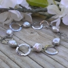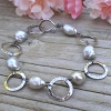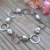 Grey Pearl & Hammered Circle Link Bracelet - Oxidized Sterling