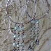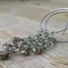 Each hoop is a slightly less than one inch across, and the earwire extends directly from the hoop. This makes a nice, simple earring to dangle lots of little gemstones! Slightly asymetrical cascades of gems - each about 3.5mm - hang from the hoop and catch the light beautifully! The last gem is snuggly secured with my signature "wonky wrap," which adds a nice detail and the appearance of weight and balance to the pieces. (Don't get me wrong - they're still nice, lightweight earrings that won't drag you down!)