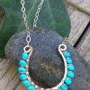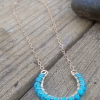 Gorgeous bright blue Kingman Mine Turquoise rondelles, each about 3 x 4 mm, have been wrapped securely on a handforged 14K Gold Filled frame with 14K Gold Filled wire. I love these turquoise gemstones- the color is a bright, Robin Egg blue, and just gorgeous! You won't see stones like this on a huge belt buckle; this turquoise is refined & feminine & looks lovely with gold.