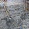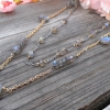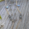 This Labradorite double strand necklace has been created using both oxidized sterling silver chain and 14K gold filled wire. I love how the grey & gold metals pick up the grey & blue tones in these gorgeous labradorite faceted briolettes! The blue flash is very desirable and strikes a bold contrast to the 14K gold filled wire.