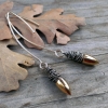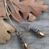 Here I have secured an 18k gold plated brass plumb bob to handforged 14K Gold Filled earwires, using a foot of oxidized sterling silver wire. This can bring just a hint of steampunk whimsy to your business suit, or a classic look to a Fall sweater. The 14k Gold Filled earwires are incredibly comfortable and are a nice finish to the earrings. The earrings measure just about 2 inches.