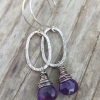Textured Sterling Oval & Amethyst Briolette Charm Earring