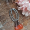A Grade A carnelian briolette in a deep, lush burnt orange dangles from the oval and is finished with my signature "wonky wrap." The carnelian measures approximately 10 x 8mm. Including the handforged sterling earwire, this earrings measures approximately 2 inches in overall length.