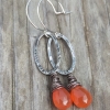 Textured Sterling Oval & Carnelian Briolette Charm Earring