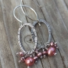 A cluster of deep pink freshwater pearl & rose-gold-plated pyrite rondelles dangle sweetly from the oval. All balled headpins have been made by me. The oval and wrap has been lightly oxidized to bring out the texture. The pearl is approximately 5x6mm and each rose-gold plated pyrite gemstone rondelle is approximately 4mm. Including the handforged sterling earwire, this earrings measures just over 1.75 inches in overall length.
