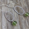 Textured Sterling Oval & Peridot Rondelle Charm Earring