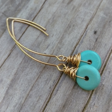 Howlite Rounds on 14K Gold Filled Earwires - Finished with Signature Wonky Wrap