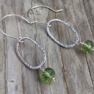 Textured Sterling Oval & Peridot Rondelle Charm Earring