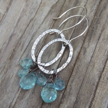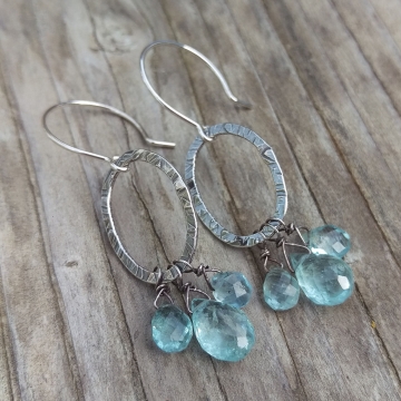 Textured Sterling Oval & Natural Aquamarine Cluster Charm Earring