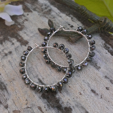 Pyrite Faceted Rondlles Wrapped in Sterling on Handforged Sterling Hoops