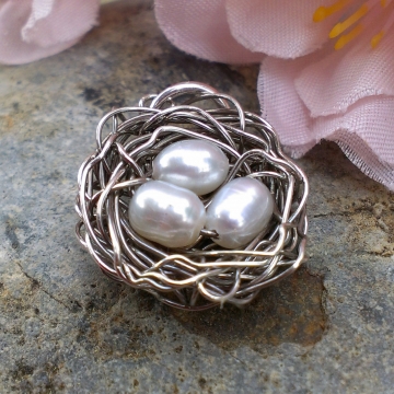 Nest Necklace - Single Nest, Trio in White, Pink or Peacock