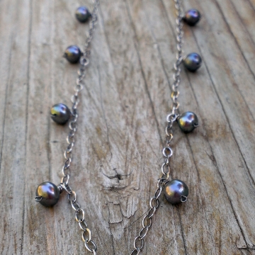 Pearl Charm Necklace - Pewter Pearls, 22 inch length, adjustable
