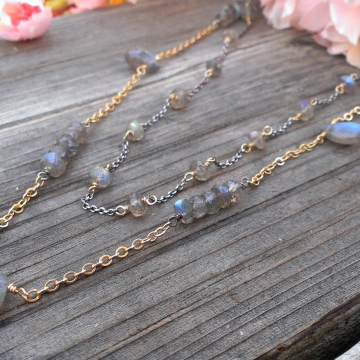 Labradorite Gemstone Necklace / Double Strand - Mixed Metal (sterling & 14KGF) with Labradorite Briolettes, Rondelles