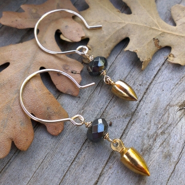 Mixed Metal Earrings - Hematite Rondelle on 14k Gold Filled Earwires with 18k Plated Brass Plumb Bob