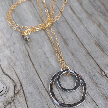 Oxidized Sterling Gold - Mixed Metal necklace; Oxidized Sterling Circle Duo on 14K Gold Filled Chain