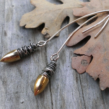 Sterling Gold Earrings - 18k Plated Brass Plumb Bob Drop with Oxidized Sterling Wonky Wrap
