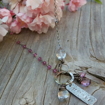 Tourmaline and Quartz Crystal Gemstones Linked with Sterling Wire - Handforged Clasp, Hand-stamped Medallion & Gemstone Charms
