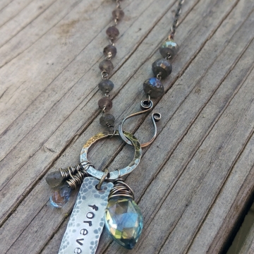 Labradorite Gemstones Linked with Sterling Wire - Handforged Clasp, Hand-stamped Medallion & Gemstone Charms
