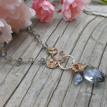 Blue Quartz Gemstones Linked with 14K Gold Filled Wire - Handforged Clasp & Gemstone Charms