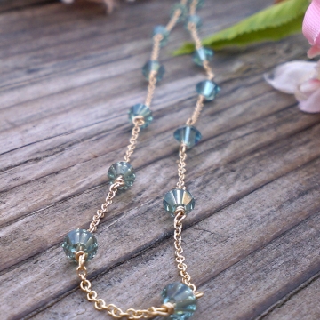 Swarovski Station Necklace - Erenite Xillion cut crystals linked to 14K gold filled chain with 14KGF wire