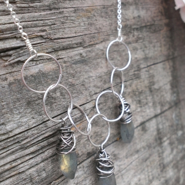 Labradorite Marquise Briolette Charms on Sterling Links, Hanforged, with Dainty Chain