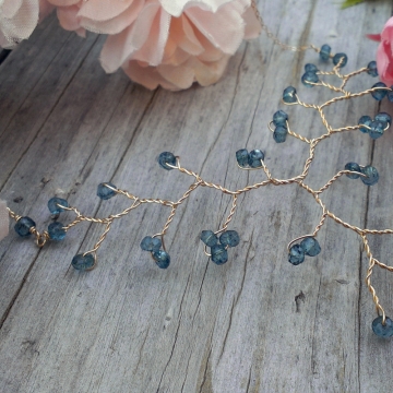Vine Collection Petite Necklace - Faceted London Blue Topaz Gemstones in 14K Gold Fill, Adjustable Length