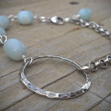 Amazonite Link on Heavy Chain with Hammered Circle