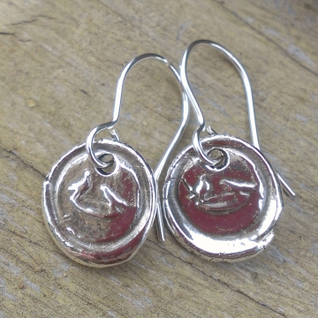 Antique Insignia / Fine Silver Earrings - Birds & Birdbath
