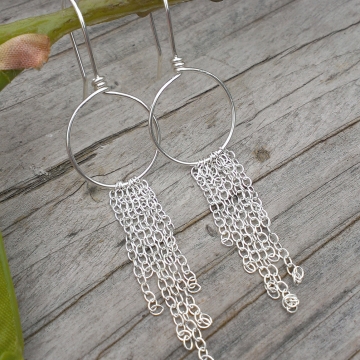 Hoop Earring with Sterling Silver Chain Fringe