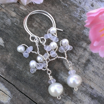 Vine Collection - Pearl & Moonstone Earrings in Sterling Silver